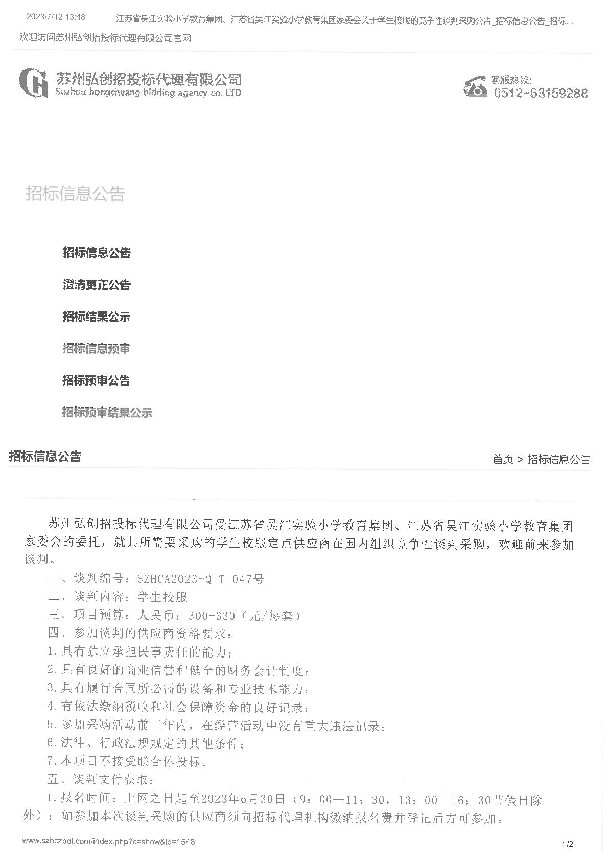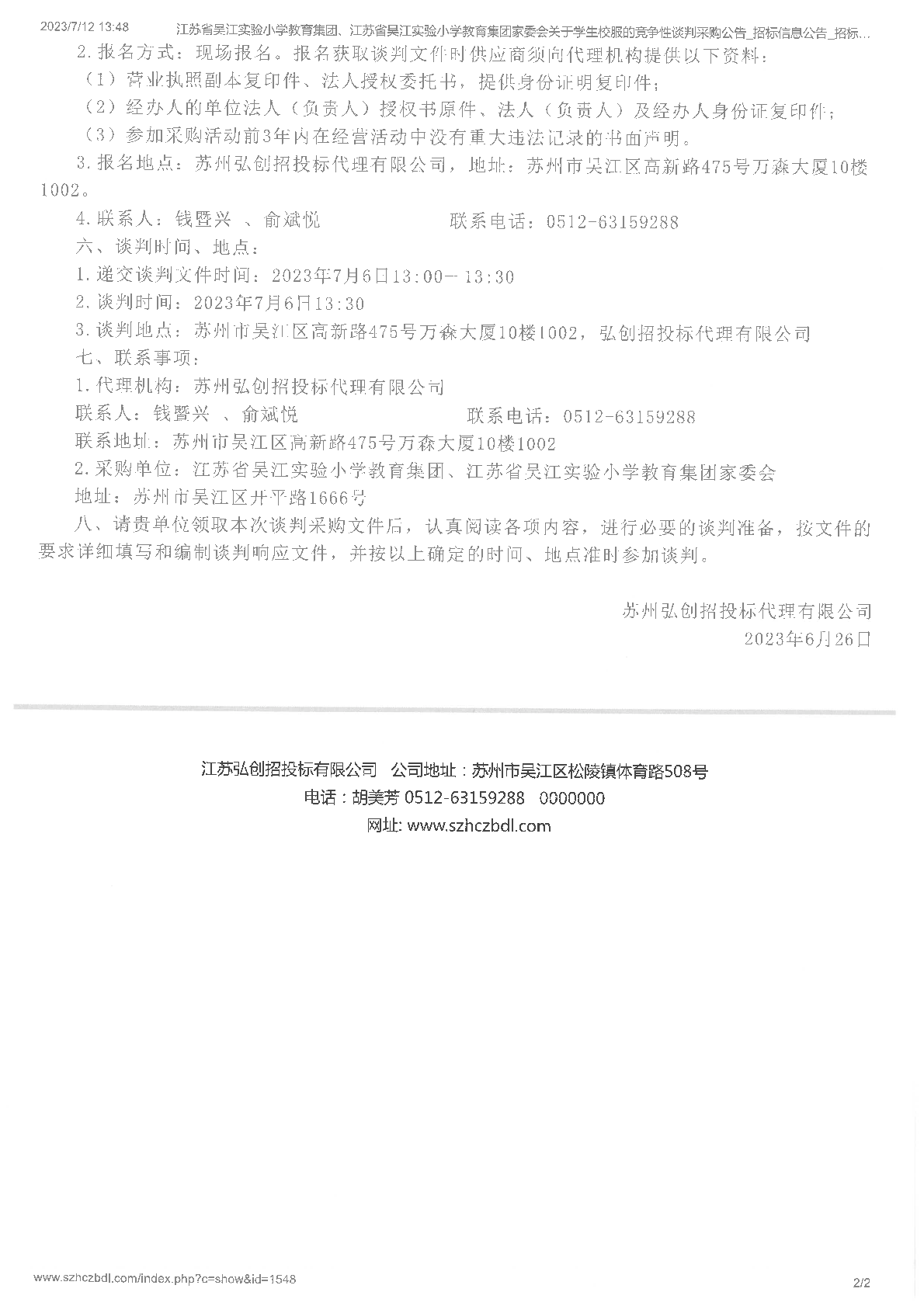 2023年学生校服竞争性谈判采购公告