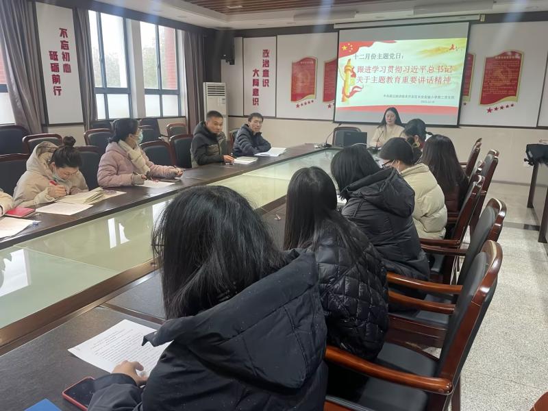 12月18日,吴江经济技术开发区长安实验小学第二党支部组织党员开展专题学习,跟进学习贯彻习近平总书记关于主题教育重要讲话精神。本次会议由支部书记任莉寅主持。