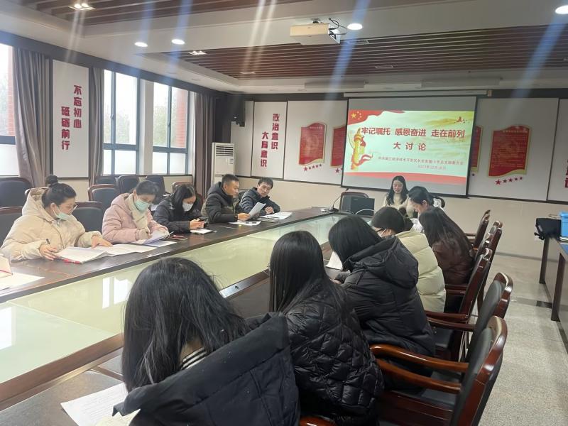12月18日,吴江经济技术开发区长安实验小学党总支部开展“牢记嘱托、感恩奋进、走在前列”大讨论,活动由党总支组织委员任莉寅主持。大家结合学习感悟,紧密联系岗位职责和工作实际,谈体会、谈打算、谈建议,积极开展专题讨论。