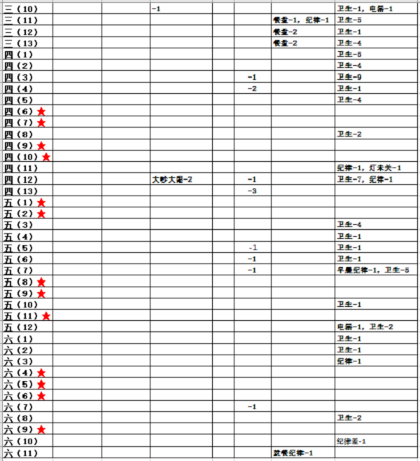 第三周一共有17个班获得班级管理评比满分,被评为“规范班”他们是: