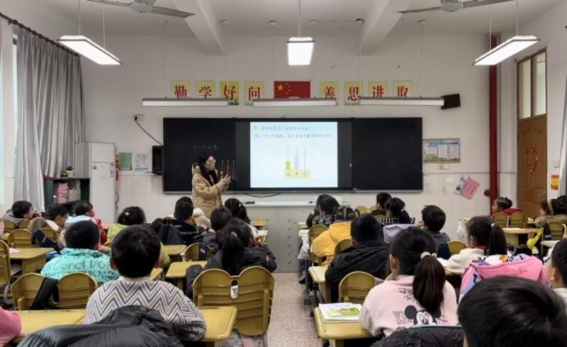 吴老师执教的“千以内数的认识”一课是“认识万以内的数”单元的内容,是小学阶段数的认识教学的关键内容之一,既承接前面学过的“百以内数的认识”,又为后面万以内数、多位数的认识打下基础。课堂上老师通过小棒、计数器、小方块等教具多元表征数的组成,加强认数的直观性,突出对数的意义的理解。丰富的课堂活动有助于提升学生的学习兴趣,帮助学生积累活动经验,在感性和理性的共同作用下发展数感。又以计数器作为操作工具,让学生理解个位、十位、百位满十向前一位进一的道理,体会相邻两个计数单位之间的十进制关系,认数的教学离不开数数活动。在认识千以内数的过程中,通过大量边拨珠边数数的活动,灵活选择数数的方法,学生可以更加全面地认识万以内数的含义、组成特点和读写方法,由此不断积累数感。