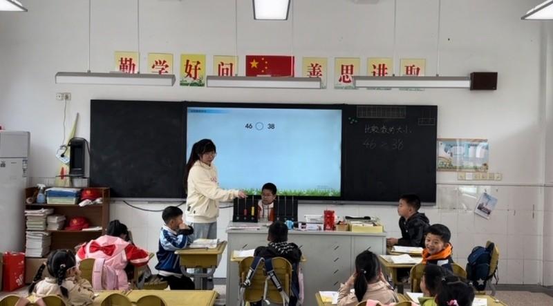陈老师本节课教学的是比较数的大小,确定数的大小的依据是数的意义、组成和顺序,陈老师先带他们复习旧知从而来学习新的知识,通过拾贝壳比赛的情境引入,想知道谁赢了实际上是要比较这两个数的大小,陈老师鼓励学生自主探索比较这两个数,通过拨计数器、数的顺序交流发现比较两位数大小的方法,陈老师在整节课能够让学生在学习活动中体会独立思考、互相交流的价值,感受数的大小,进一步发展数感。