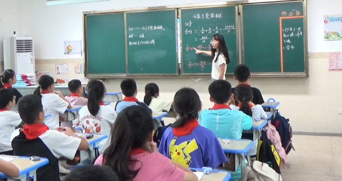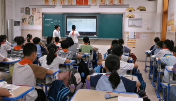 张铭蕾老师执教《分数乘整数》,整节课思路清晰,环节设计比较用心,注意结合了知识间的联系,从已经学过的整数和小数乘法导入,突出乘法的含义,为今天新课的学习做铺垫。新授部分,也注重尝试让学生用多种方法进行解决,有用学过的知识解决新知识的意识,做到知识间的迁移和联系。整节课从整体设计、教态和语言表达上都比之前成熟了很多。建议:1.探索新知时,如果要让学生用学过的知识解决,可以让学生写一写,老师根据学生的反馈,有针对性地请学生回答,并进行点拨。这里重点应该放在乘法和加法之间的联系上。2.在教学3/10×3时,应该再慢一点,把前面说的分数的意义放在这边说,边写边说、请学生再说,分子的两个3分别表示什么,理解分数的意义3个1/10乘3得到9个1/10,抓住分数单位。3.总结计算方法有点快,从一道算式只能说说自己的想法,不能让学生直接得出规律。4.在两道之后,再让学生尝试20、100朵,感受乘法的简便,让学生来感受、表达。5.回顾、比较的时候,可以呼应一下开头导入,整数乘法、小数乘法、分数乘法都是计算相同计数单位相加的和,从而更好地让学生理解知识的整体性。