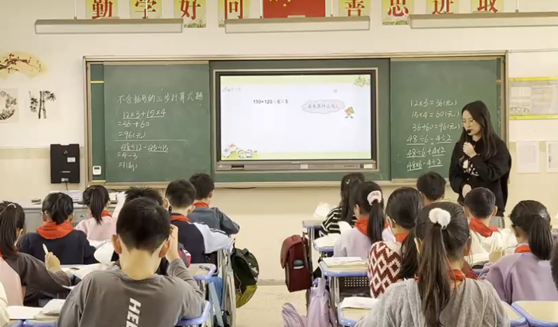 陈紫薇老师执教《解决问题的策略》、李莹莹老师执教《解决问题的策略》、屠姝萍老师执教《解决问题的策略》。三位老师老师备课充分,整体教学环节流畅,教学设计有自己的特点。陈老师目标明确,环节之间的衔接比较好,学生能够在老师的引导下,积极参与到课堂中,整班纪律也很好。注重引导学生读题、理解题意,注重画图的完整性。李老师能够充分激发学生的课堂参与,通过生动的实例和有趣的互动,让学生在轻松愉快的氛围中学习新知,教师利用小棒,使课堂更加生动有趣。教师对知识点的讲解清晰明了,能够帮助学生快速掌握核心概念。教师对课堂节奏把握得当,能够合理分配时间,确保每个环节都得到有效落实。屠老师在教学例题时呈现学生熟悉的生活场景,引导他们利用已有知识和经验找到数量关系,根据数量关系自主列式解答,交流时,重点展示和引导比较综合算式本质相同,形式稍有不同的两种计算过程,既突出计算顺序的规定性,又体现了计算过程的灵活性。