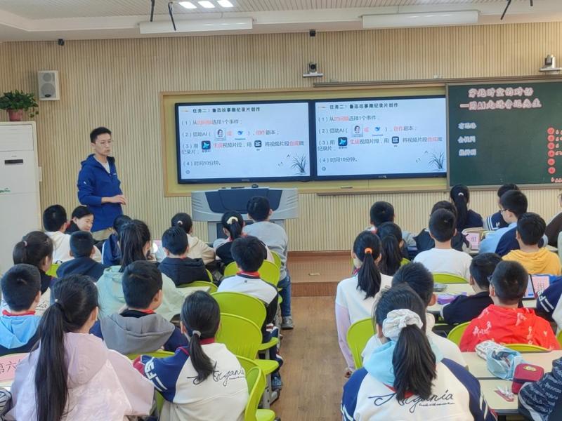 顾伟平老师根据教研组安排,开展了聚焦人工智能为主题的小学综合实践活动课:《穿越时空的对话——用AI“走近”鲁迅先生》。本次活动顾老师引导学生运用AI工具,合作完成鲁迅生平介绍、时间轴与微纪录片创作,让鲁迅形象变得可感可触。课堂旨在技术赋能经典文化,培养学生信息整合与创意表达能力,在实践合作中树立文化传承与创新意识。